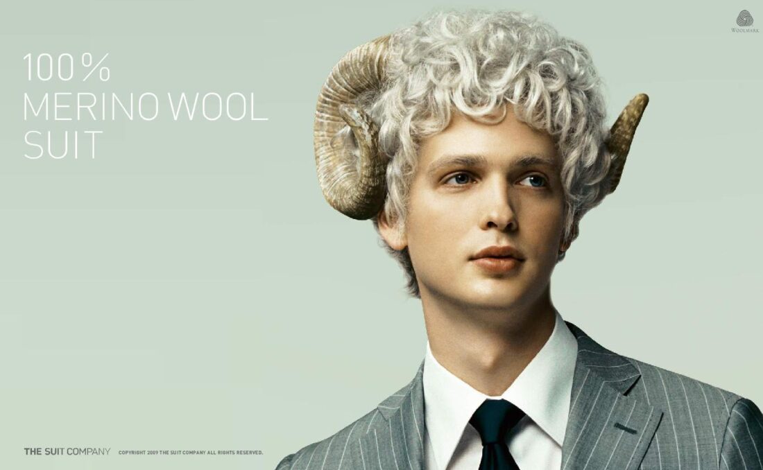 THE SUIT COMPANYさんの100% MERINO WOOL SUITの2009年広告です。