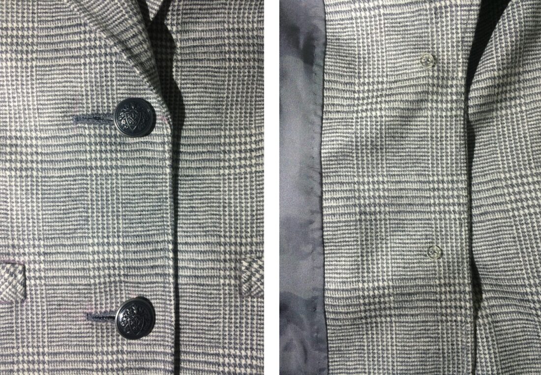 最後にやらかしたのがフロントのボタンホールの長さが違う。チョークの位置の切り込み見誤ったんだろう。