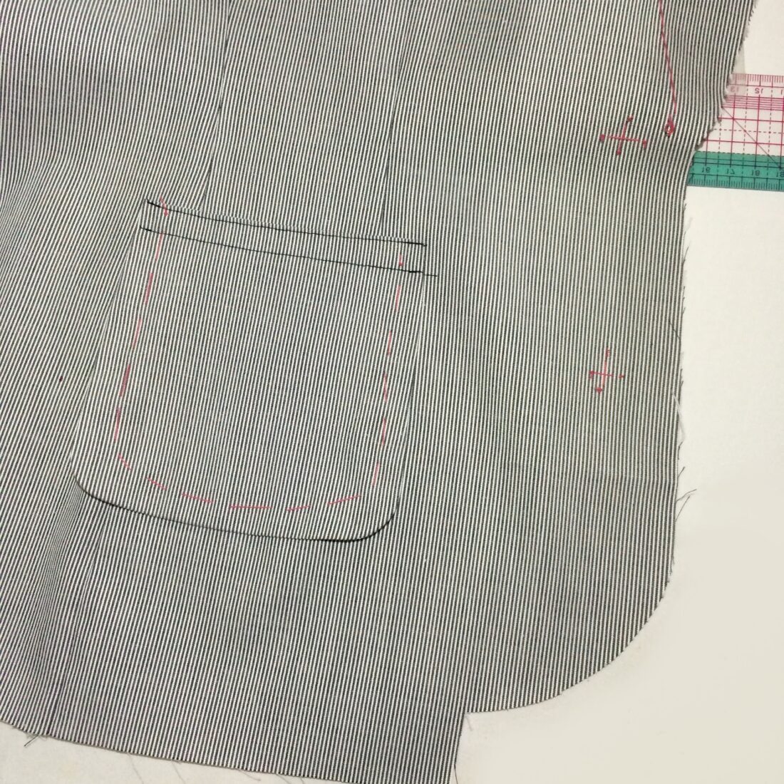 Making Cotton jacket Monday, May 11th, 2015 シャツジャケット二着目。こちらもタンガリーコットン。見た目も風合いも爽やか。 細いストライプの黒白地ですが遠めに見るとグレイに見えます。 作っているとき目がチカチカして大変でした。