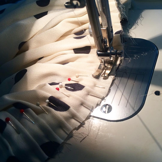 タックドギャザーは厚みがあるので問題なくミシンを使えました。
