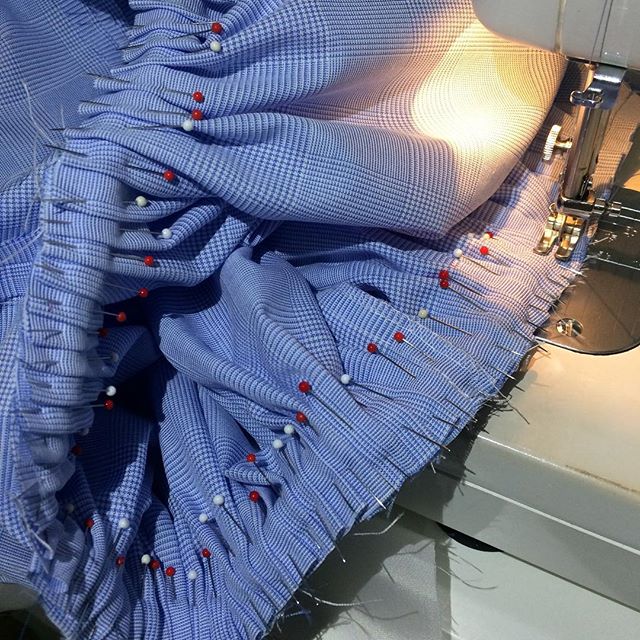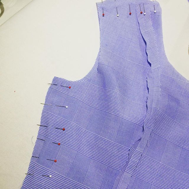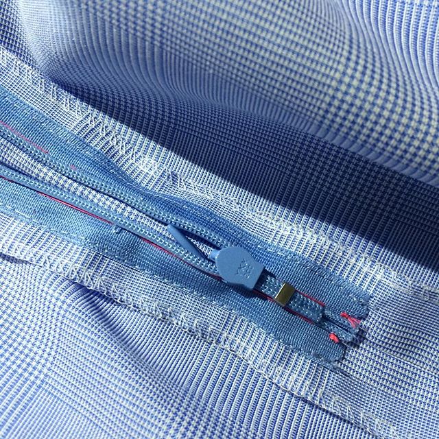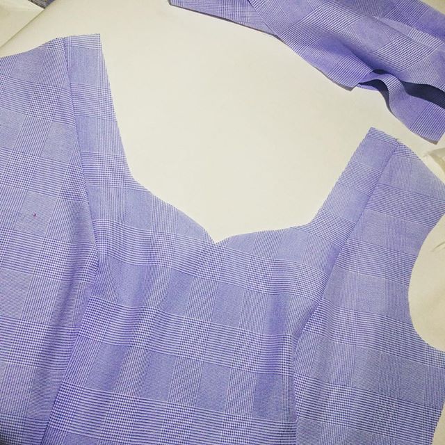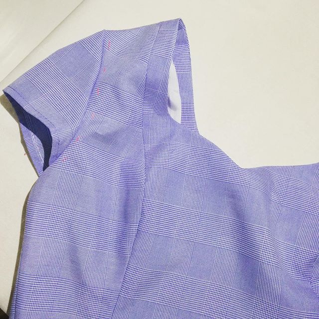 水色グレンチェックのワンピースドレスの製作工程です。