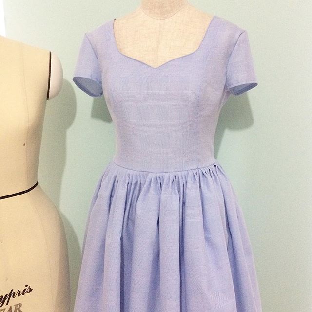 ハートネックライン+キャップスリーブのサマードレスに仕立てました。
