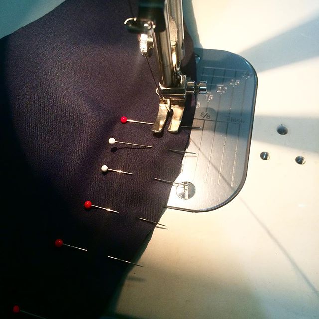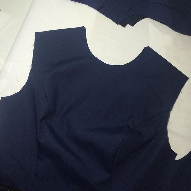 シンプルなネイビーの総裏仕立てのフィットアンドフレアボリュームドレスのメイキングです。