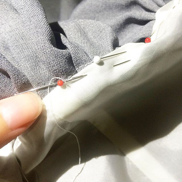 裏地は手縫いでかがりつけました。