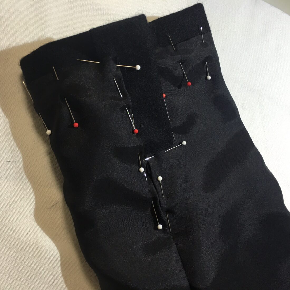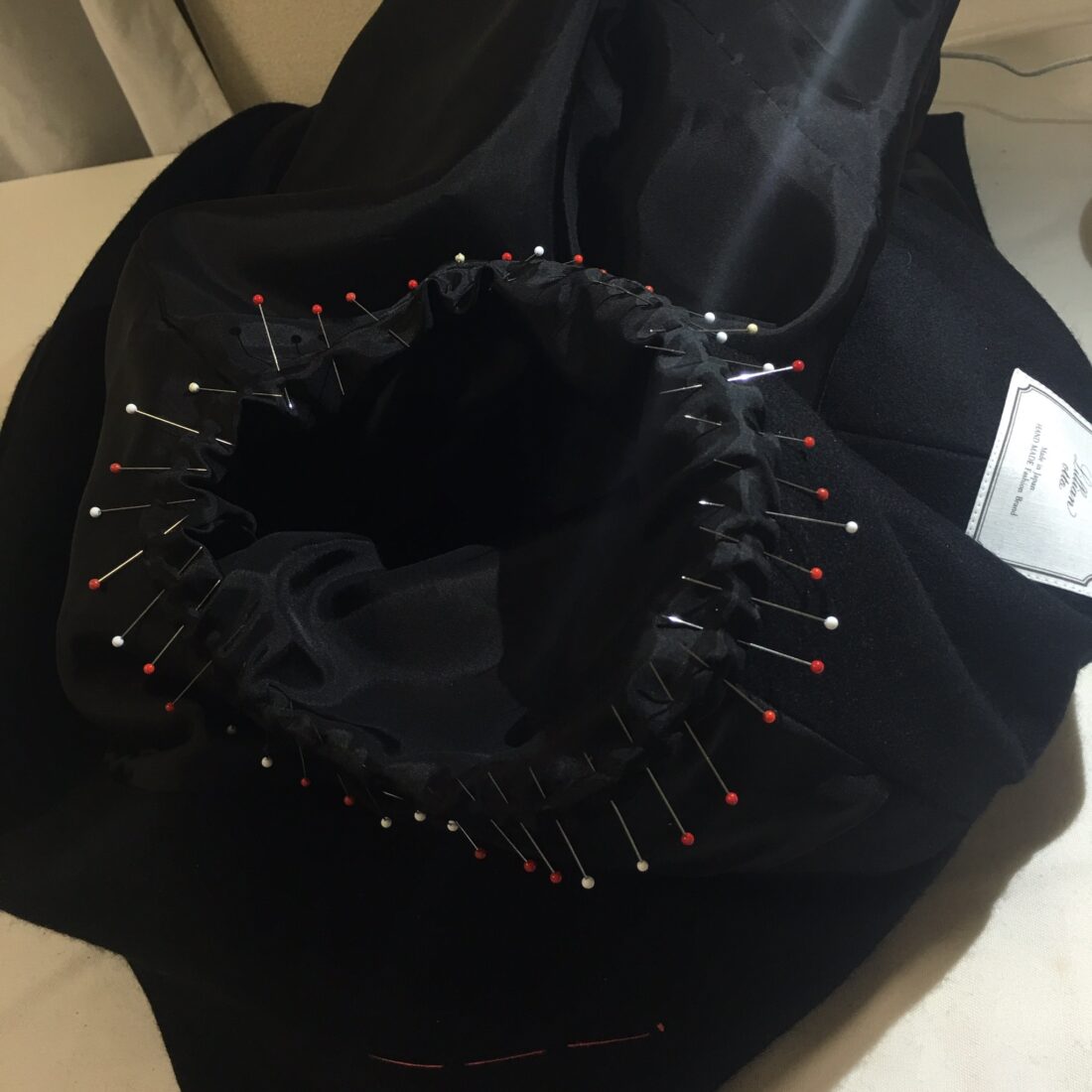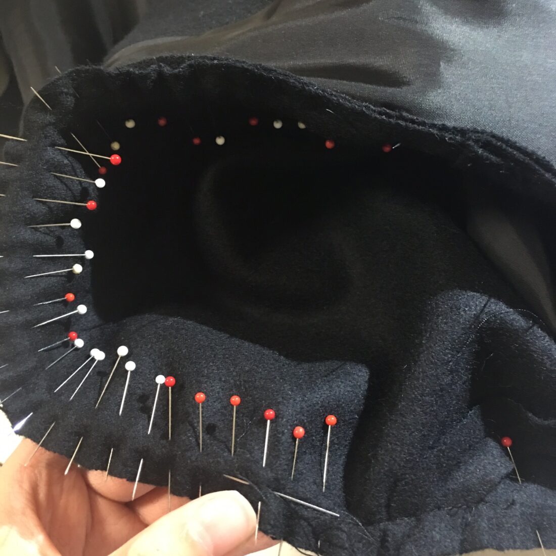 いつも通りピンでいせ込んで返し縫いで手縫い作業。
