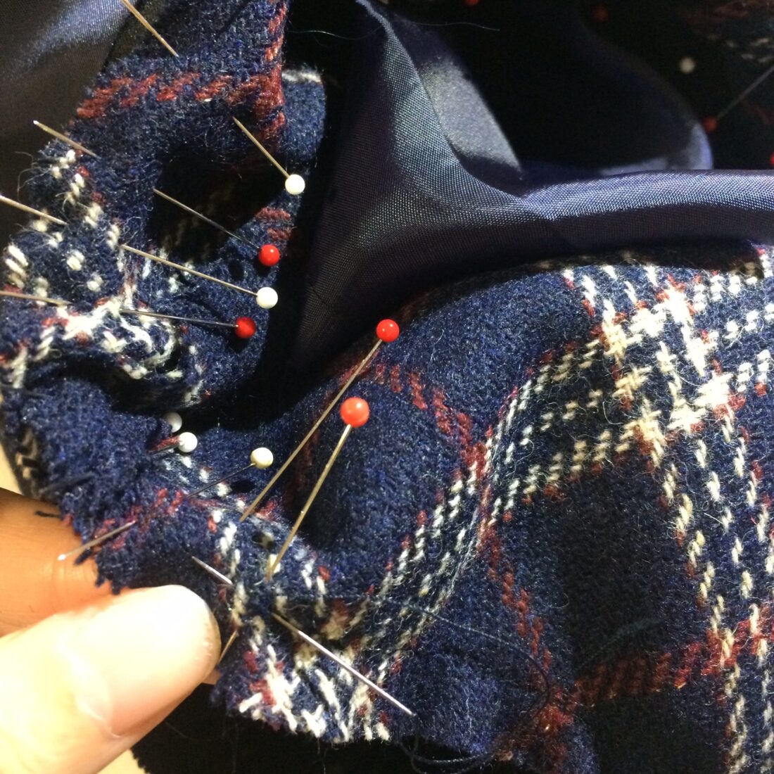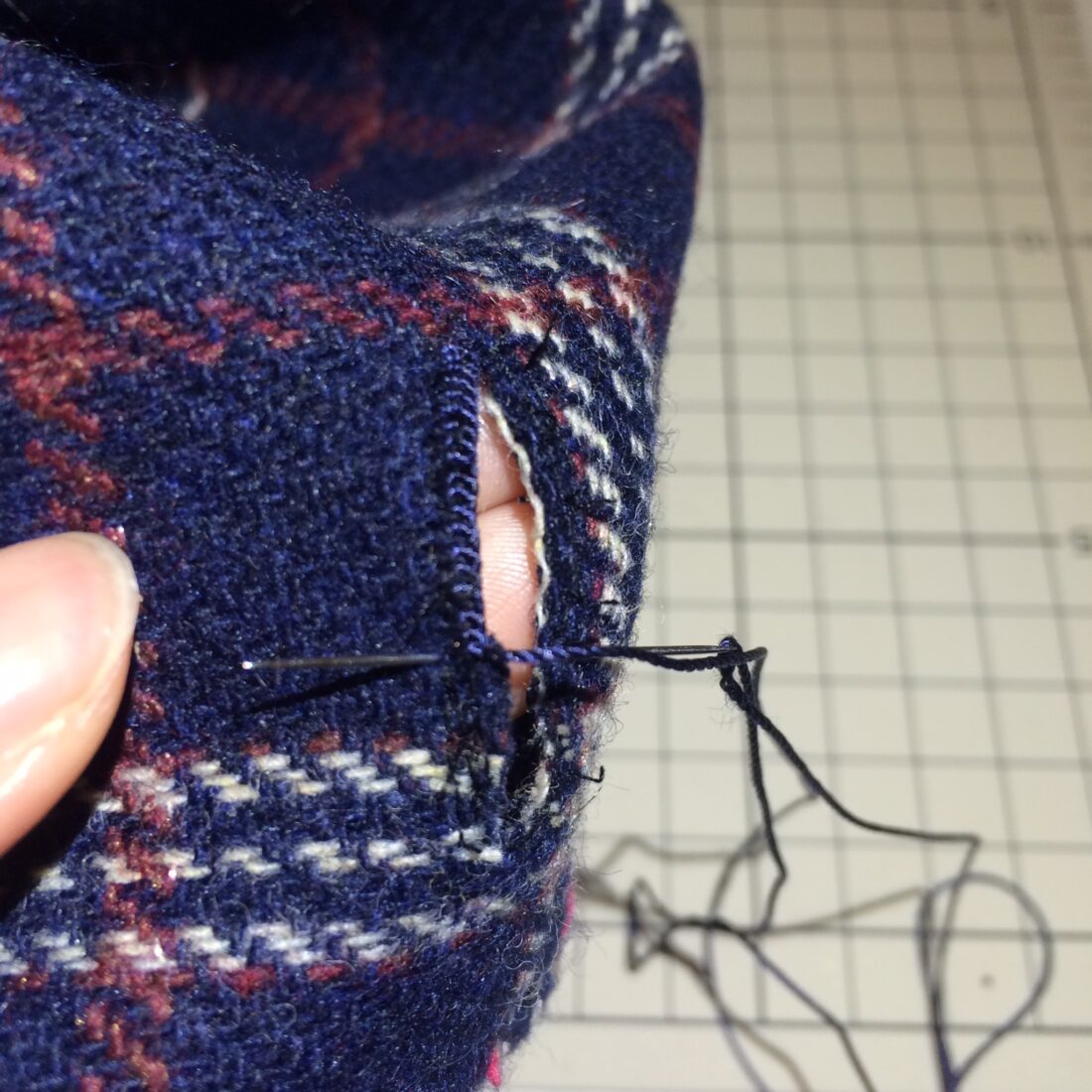いつも通り肩のいせ込みは手縫いで細かく返し縫い。