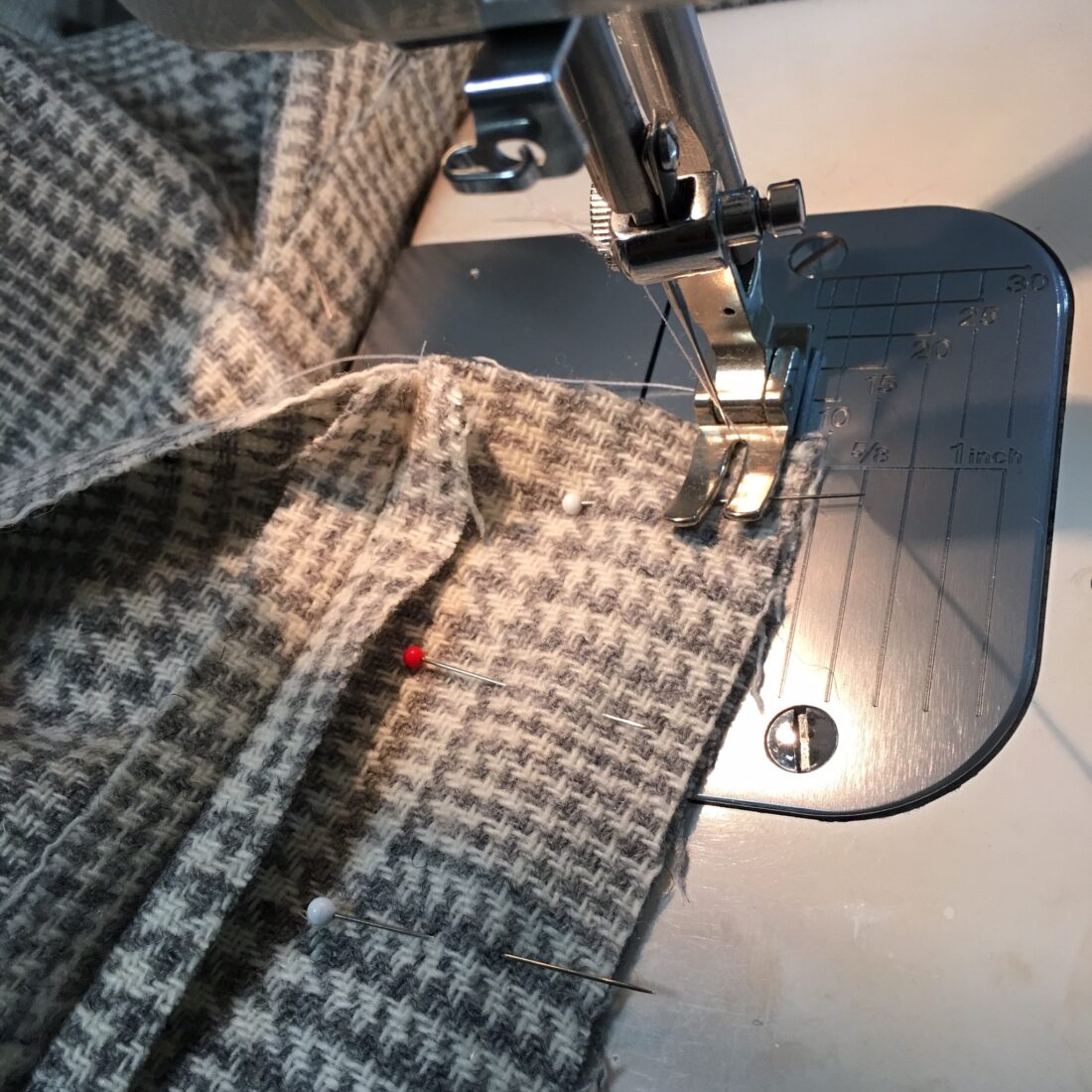 Making Jump suit #2 Saturday, December 12th, 2015 グレンチェックのジャンプスーツを一気に縫い上げました。 今回はVネックのパターンを使ったけど、今度はラウンドネックを黒ストライプで作ってみたい。 裾の裏地の処理をこの前から難しくしたのでまだ慣れないけど 裏地が動くようになって裾が釣れなくなったので良い出来です。 フロントファスナー開きにしました。サイドよりも着脱が楽。 パーツがいつもより多いだけで縫いやすいパターンになりました。 近いうちに着用画像を撮りたい。 ベルト切り替え部分 パンツのカーブポケット ミシン 見返し 裏地処理