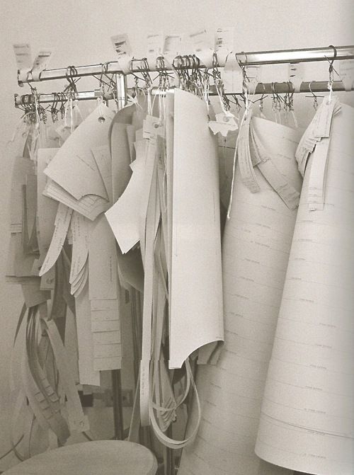 棚に型紙の収納をつけたくて、いろんなブランドのアトリエ画像見てると大体服と同じように吊るしてる。