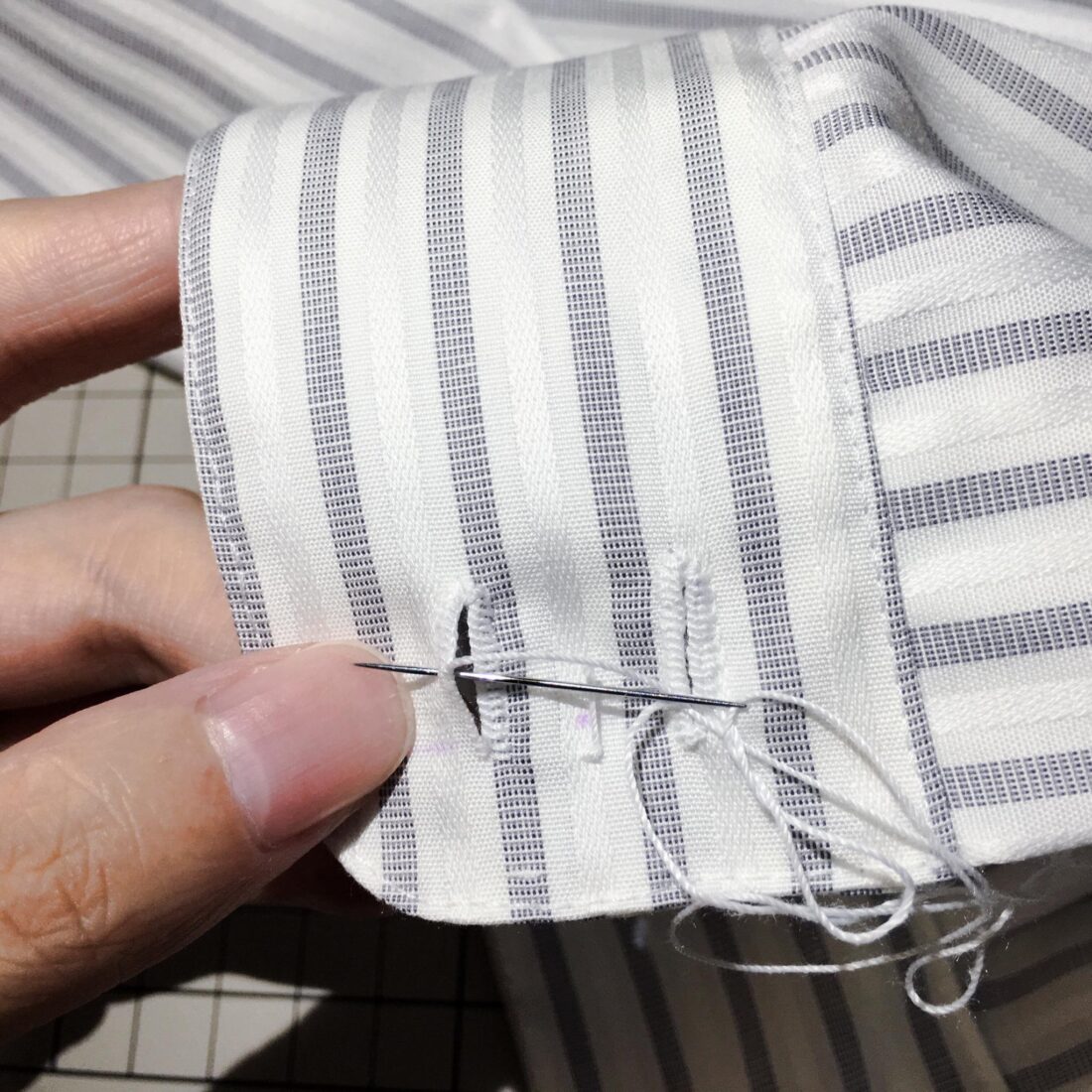 Making Button Hole #2 Thursday, September 15th, 2016 ボタンホール2着目です。 拡大しても遜色無いほど均一に出来るようになってきました。 ただ台襟部分は地の目を無視して切込むのでボロボロほつれてくるのが難点。 そこらへんも上手く仕上げられる方法を見つけたい。 シャツが終わったら次はパニエとホワイト×ブラックレースを作りたい。 その前に確認用ドレスをお仕立てして発送しなきゃ。 定期的に自分用のシャツを作って細かな部分も作り慣れたいな。 あと柔らかいとろんとした風合いの素材でラペルカラーのシャツも何着か作りたい。