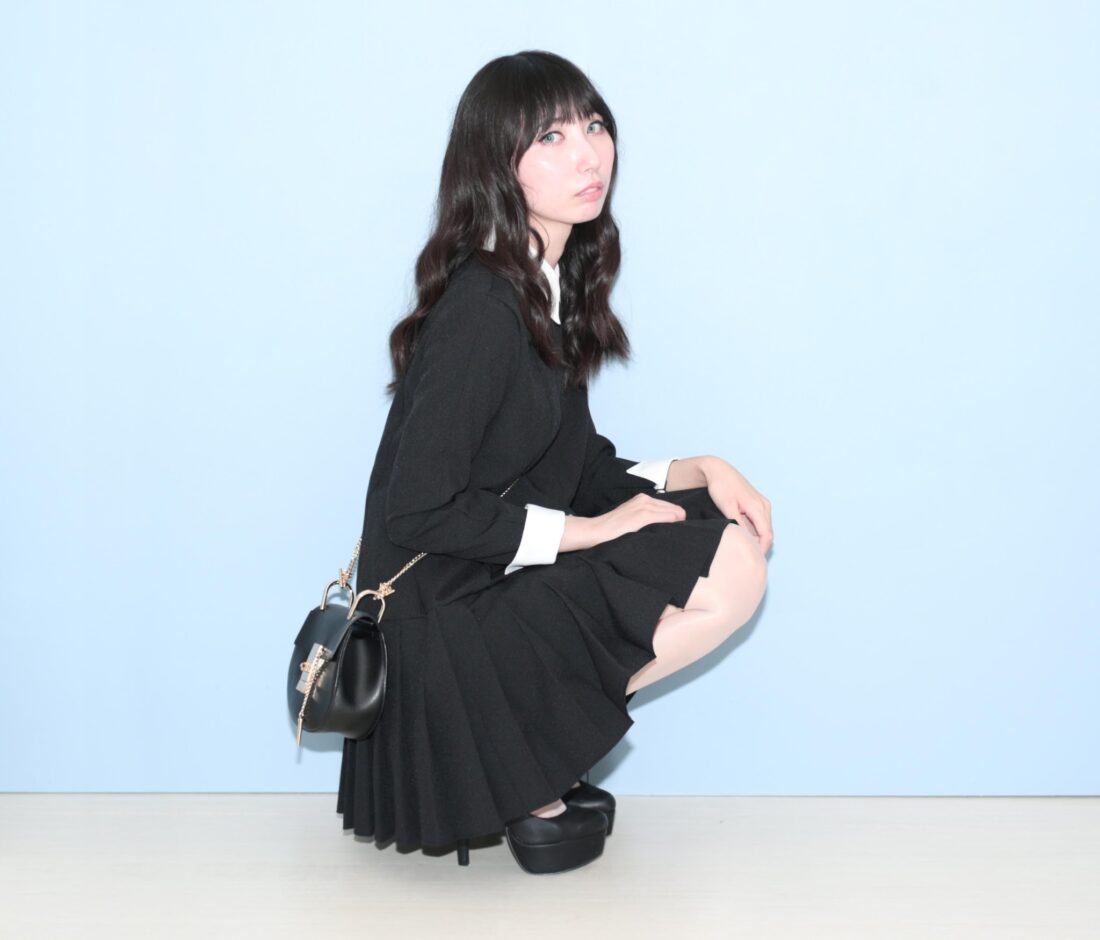 outfits White Collar Classic Dress Saturday, September 24th, 2016 プリーツクラシックドレスの着装画像です。 しゃがんで撮った方が光の当たり具合が良いのか写りが良い気がする。 いつもモノクロな服ばっかり着ているので色使わなきゃとか思うんだけど、 それが自分らしさだって思えるならそれでも良いかと思って開き直って黒と白の服ばかり作ってる。 その代わりシャツブラウスは大好きな水色系選んでる。 気にいる青系の生地を見つけたらそれでクラシックドレス作りたいな。