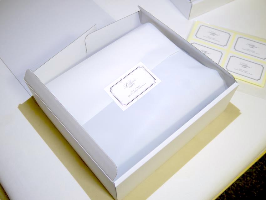 パッキングはこんな感じ。正方形に近いこのホワイトボックスが気に入っています。