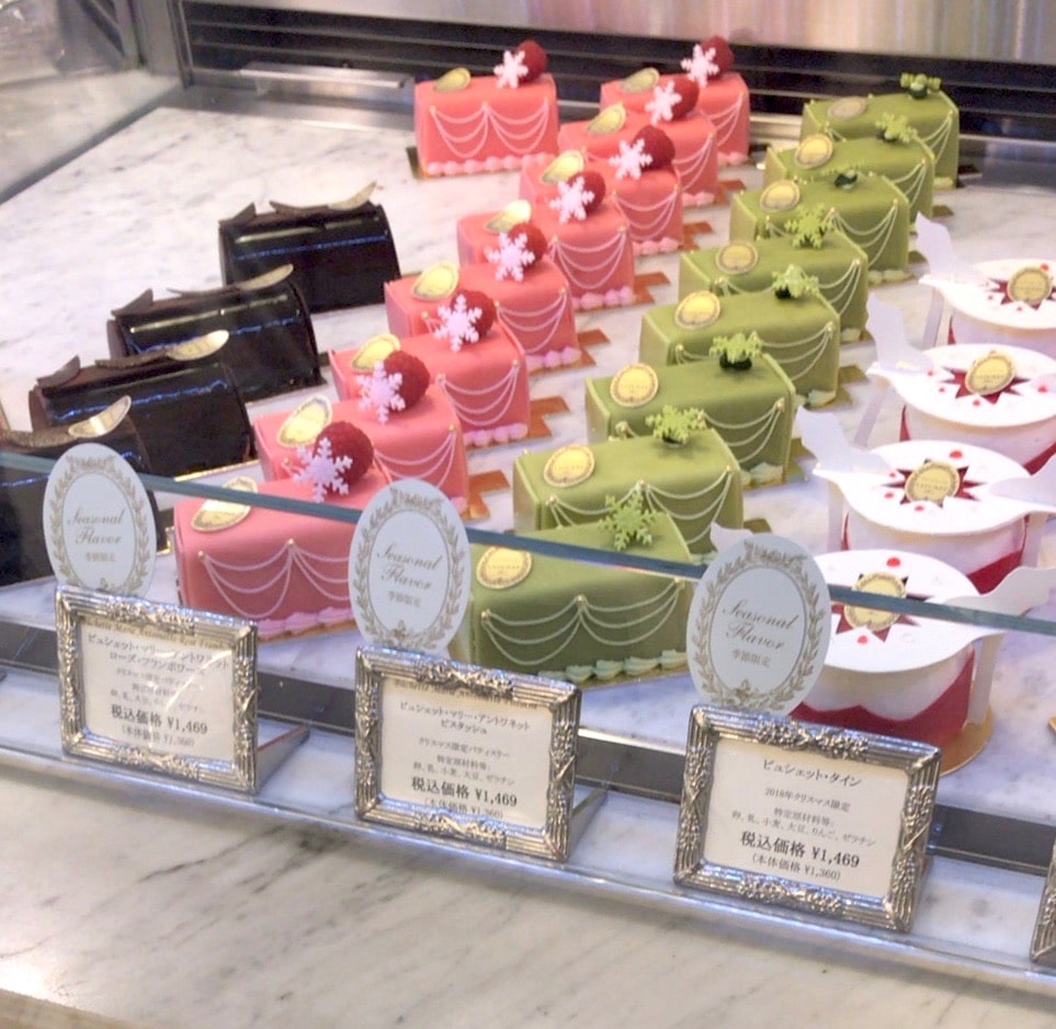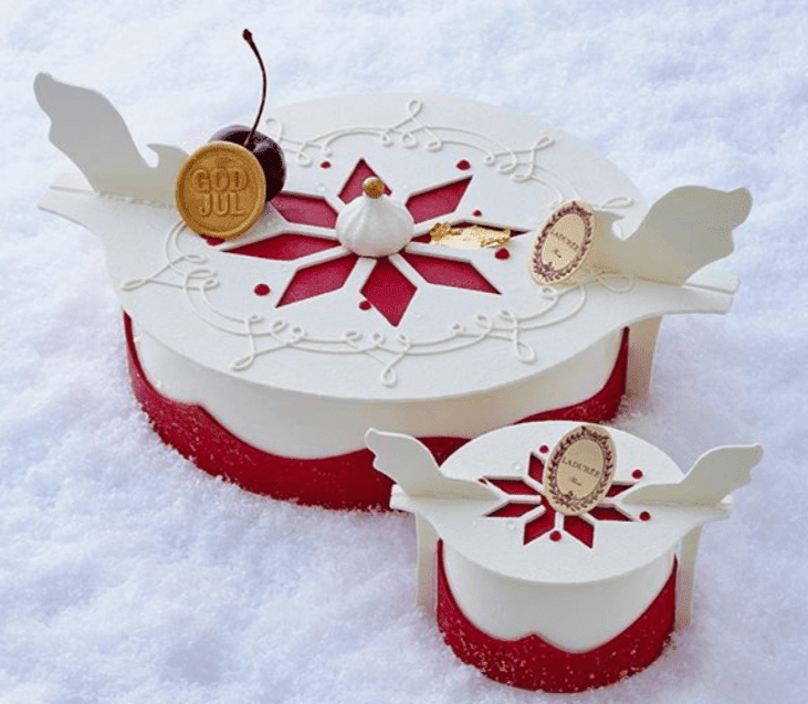 今年の新しいクリスマスのケーキ、日本版のミニサイズだけデザインが簡略化されてる。