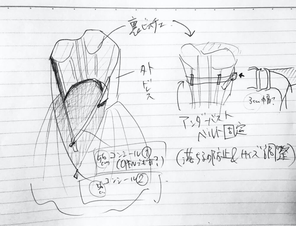 昨日眠気が来た途端にビスチェドレスの構造思いついて走り書きでメモった。