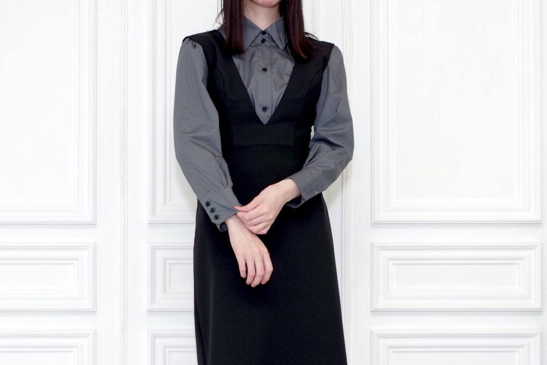 オーバースカートと合わせるときはシャツの後ろタックは無しじゃなきゃだめ。
