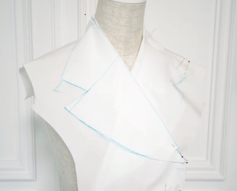 ゴージラインは変えずに襟先をちょっと上に角度付けてみた。