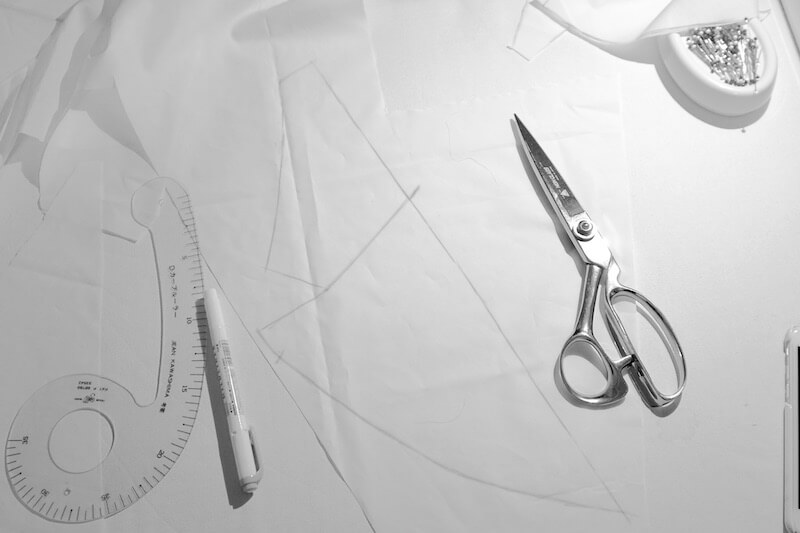 作図じゃなくてドレーピングじゃなくてそのまま布に書いちゃうっていう荒技。