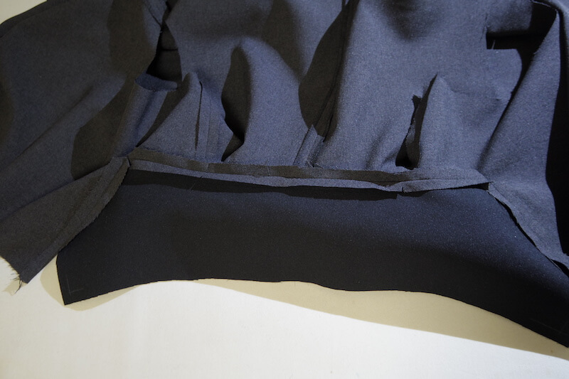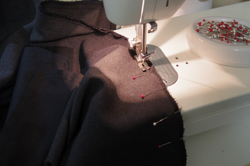 あとは見返しと裏身頃も同じ処理をして、ロックで端処理して、見返しを手縫いで祭って、裾上げて、袖作って、袖付すればボタン以外は完成。
