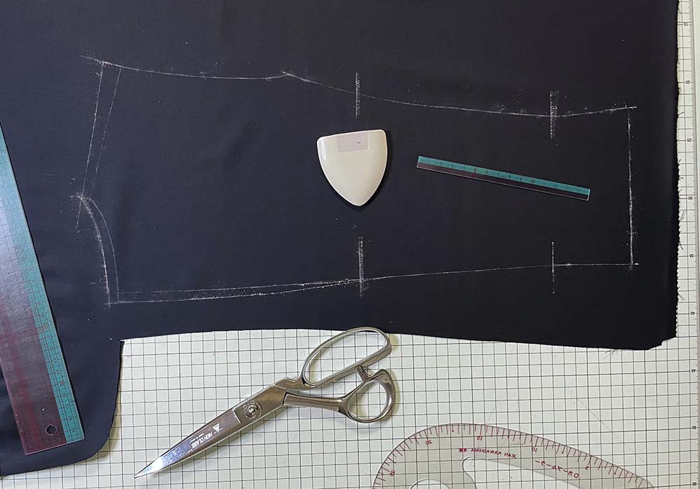 カットと芯地と切りじ付け、テープ張りが終わりジャケットの組み立てへ。