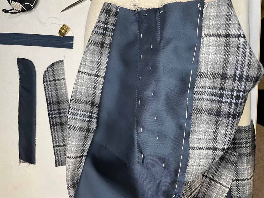 これは何年か前に作った3ピーススーツの余り生地があったのでロングパンツのスーツにする為に仕立てました。