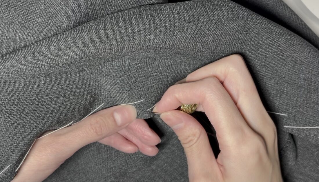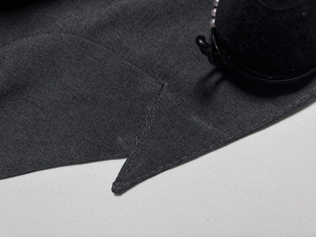 ピークの裏を千鳥ステッチをかけて緩く止める、という技法を覚えました。