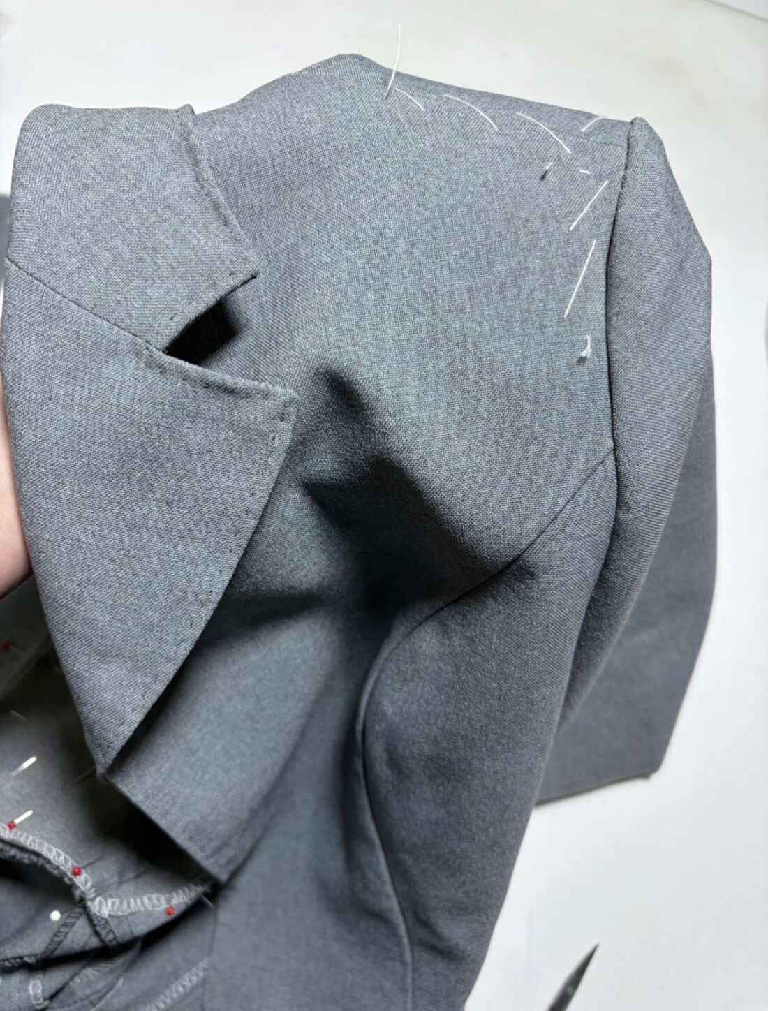 Making Gray Single Lapel Dress Monday, March 16th, 2026 グレーシングルラペルドレスのメイキングです。今回も作りながら写真をあまり撮れなかったので画像少ないですが。シングルのハイ切替ノッチラペルに4つボタン、セミタイトスカートのデザインです。